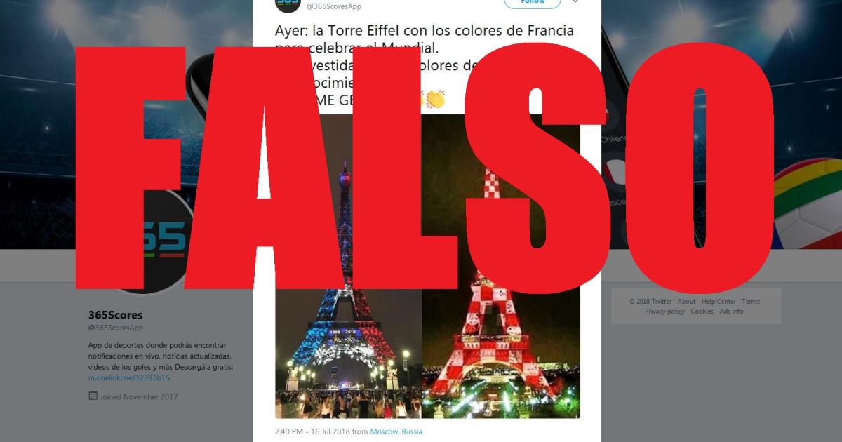 No, la Torre Eiffel no fue iluminada con los colores de Croacia después del Mundial