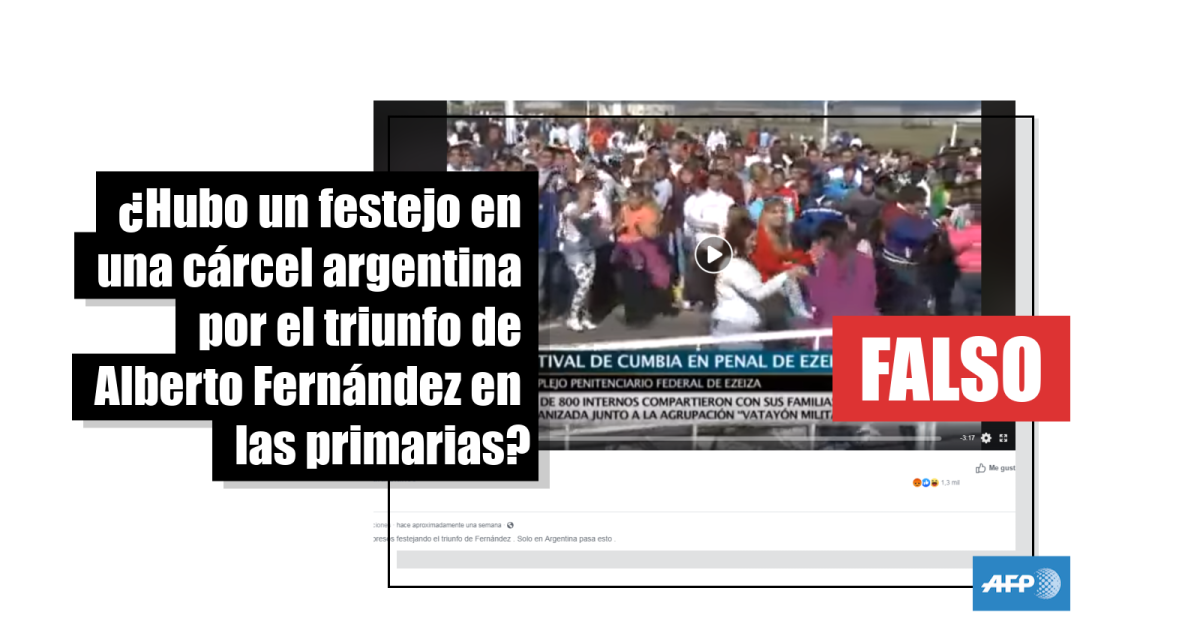 “En Ezeiza los presos festejando el triunfo de Fernández. Solo en Argentina pasa esto”, dice el texto que acompaña el video y que fue compartido más de 19.000 veces en Facebook (1, 2). Además, la publicación circula entre los usuarios de WhatsApp, quienes la enviaron al número de Reverso para que sea verificada.