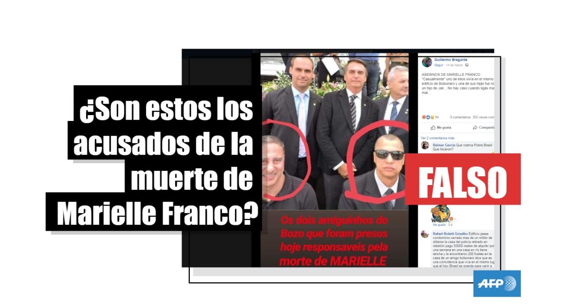 La imagen de la publicación en español lleva un texto en portugués: “Os dois amiguinhos do Bozo que foram presos hoje responsaveis pela morte de Marielle” (“Los dos amiguitos de Bozo que fueron presos hoy responsables por la muerte de Marielle”). Y en la leyenda agrega: “ASESINOS DE MARIELLE FRANCO”.