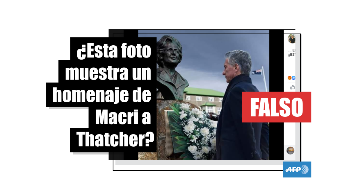 En suma, la imagen que muestra al presidente argentino, Mauricio Macri, junto a un busto de la exprimera ministra británica Margaret Thatcher es falsa, producto de un montaje de dos fotografías: una, de la estatua que se encuentra en las Islas Malvinas y otra, del mandatario en Moscú en 2018.