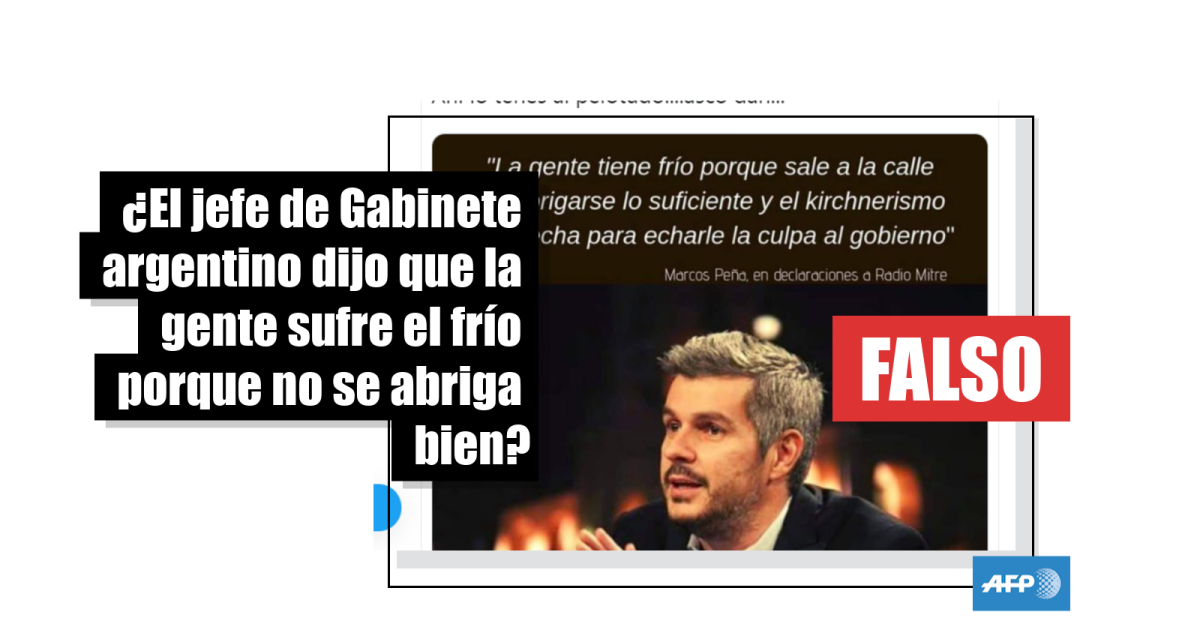 En conclusión, Peña nunca dijo que la gente tenía frío porque no se abrigaba lo suficiente y que el kirchnerismo aprovechaba eso para cuestionar al gobierno, como asegura la publicación viralizada.