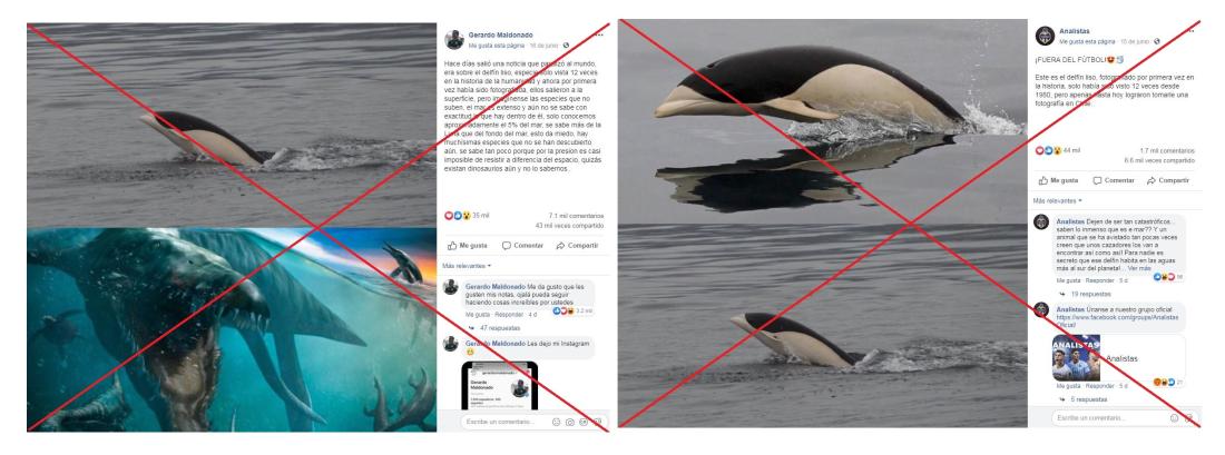 Otra publicación con un mensaje similar incluye la primera fotografía y otra con un ejemplar del mismo tipo de delfín.
