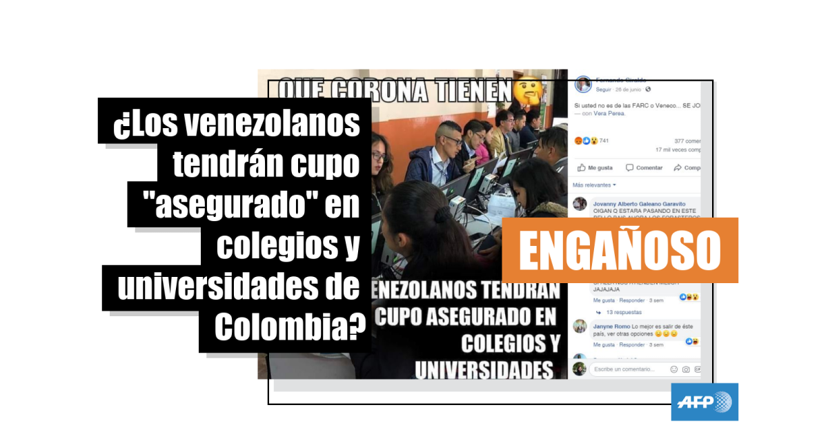 Sin embargo, consultado por AFP Factual, un portavoz del Ministerio de Educación aclaró que los venezolanos que se encuentran en Colombia no tienen asegurado su ingreso a universidades.