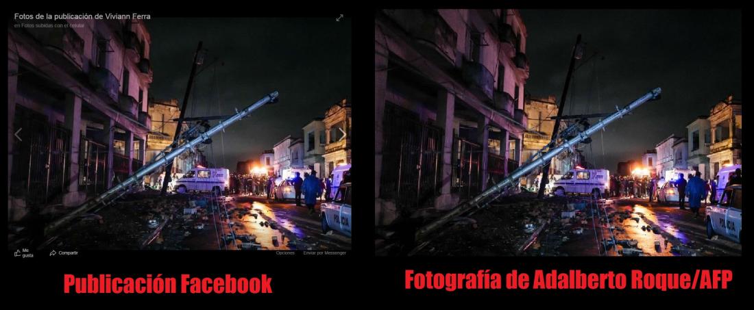 El mensaje está acompañado de 18 imágenes –una de ellas eliminada posteriormente– pero no todas corresponden con los hechos registrados aquella noche en La Habana que, al 17 de febrero, ha provocado la muerte de siete personas mientras que tres más permanecían en unidades de cuidados intensivos.
