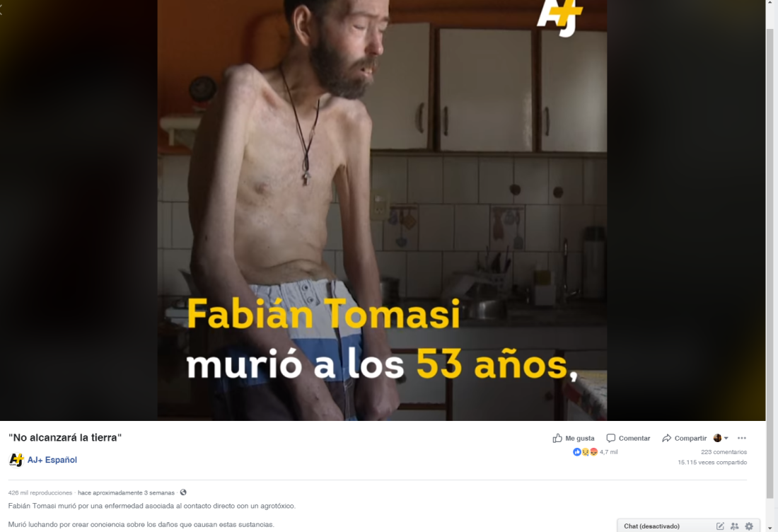 Aunque la veracidad del video publicado por AJ+ fue puesta en duda por los usuarios de Facebook, es cierto qué Fabián Tomasi luchó durante años contra el uso de agroquímicos tóxicos y murió por una enfermedad relacionada con su exposición a éstos.
