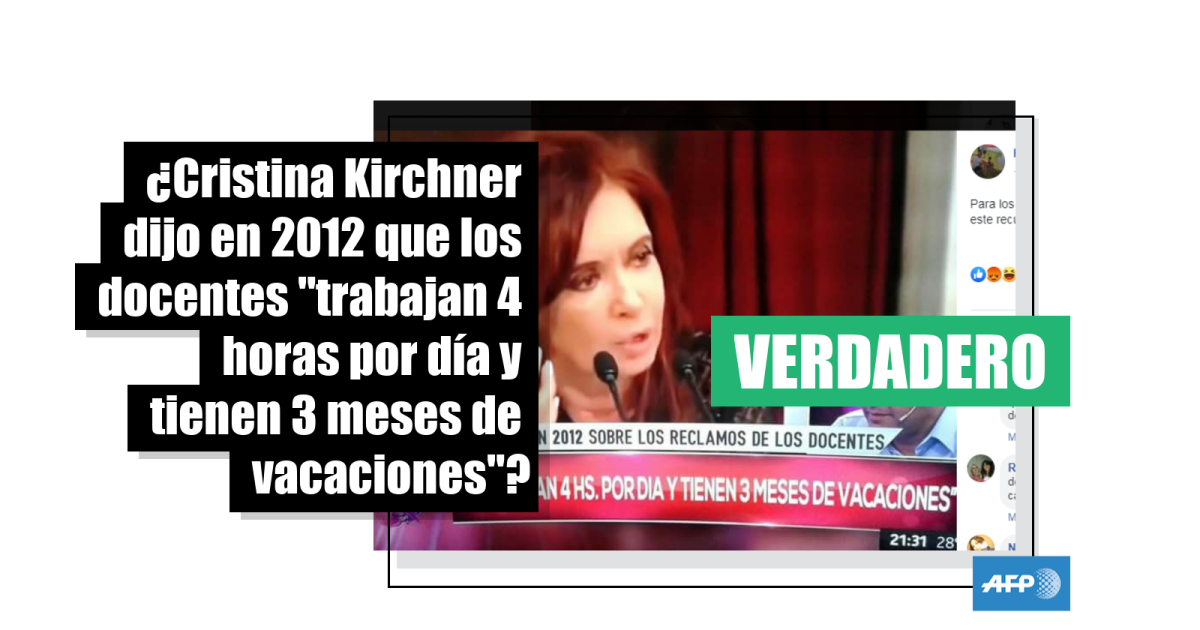 En conclusión, es verdad que Cristina Kirchner dijo que los docentes trabajan cuatro horas por día y tienen tres meses de vacaciones.