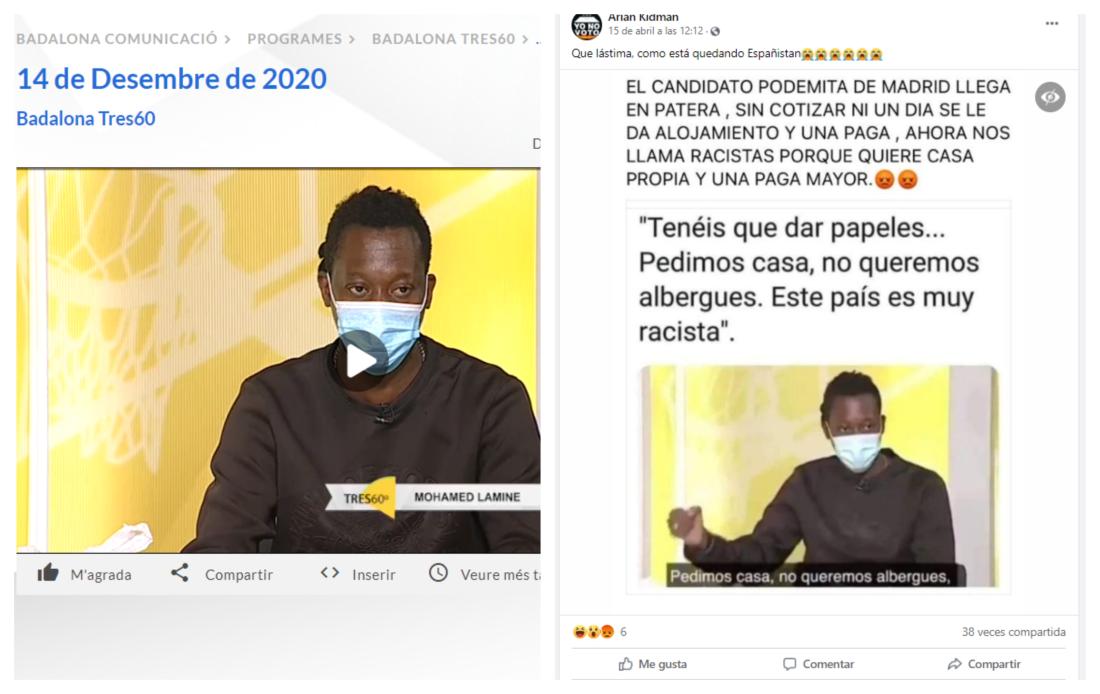 En el servicio a la carta de Badalona TV, se pudo hallar el programa completo en el que se hicieron las declaraciones (en el minuto 39:23). Allí se presentó al hombre de la imagen con el nombre de Mohamed Lamine y se cuenta que vivía en la nave que se quemó. Dicho incendio reavivó el debate sobre las condiciones infrahumanas en las que viven muchos migrantes.