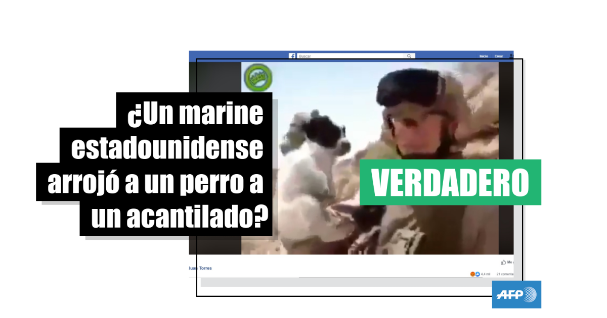 “Aquí tienes a los Marines que te van a traer la ayuda humanitaria. La "Calidad Humana" Les brota por los poros”, afirma una publicación en Facebook realizada el 9 de enero pasado, que fue compartida más de 7.000 veces, obteniendo además 67.000 reproducciones. El mensaje es acompañado por un video en el que se ve a dos soldados estadounidenses en un territorio desierto. Uno de ellos toma a un perro cachorro por el pellejo y lo arroja a un acantilado.