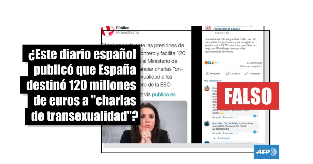 Un tuit satírico publicó que el Gobierno de España había destinado 120 millones de euros a “charlas de transexualidad”