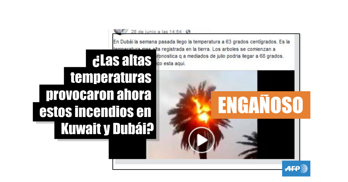 En conclusión, las primeras imágenes del video que circula en las redes sociales sí fueron tomadas en Kuwait, mientras que la secuencia de la palmera incendiada fue filmada en Arabia Saudita y no en Dubái. Pero en ninguno de los dos casos muestran hechos actuales, ni están relacionados con la ola de calor de este verano boreal, sino que ambos tuvieron lugar en 2017.