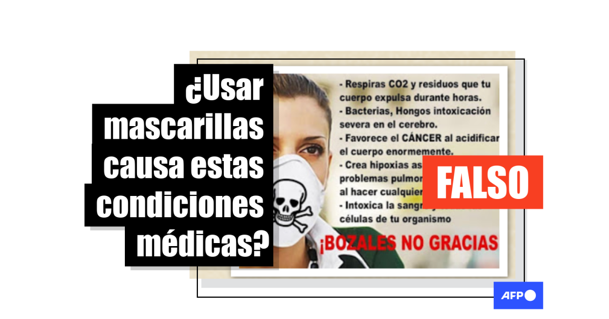 La teoría de que las mascarillas causan hipoxia se ha viralizado una y otra vez desde el inicio de la pandemia y AFP Factual la ha verificado como falsa en varias oportunidades (1, 2).